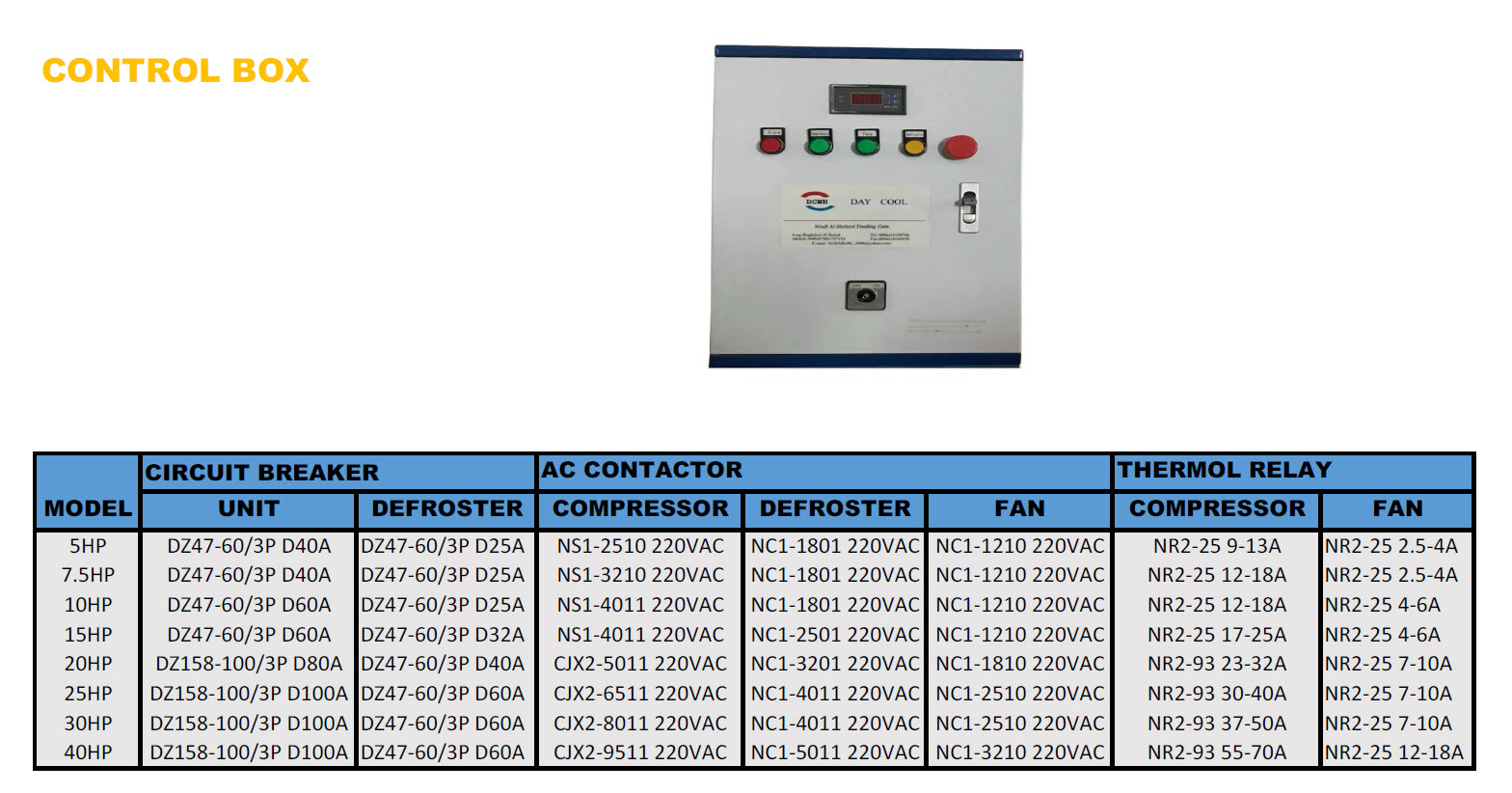 CONTROL BOX FOR UNIT